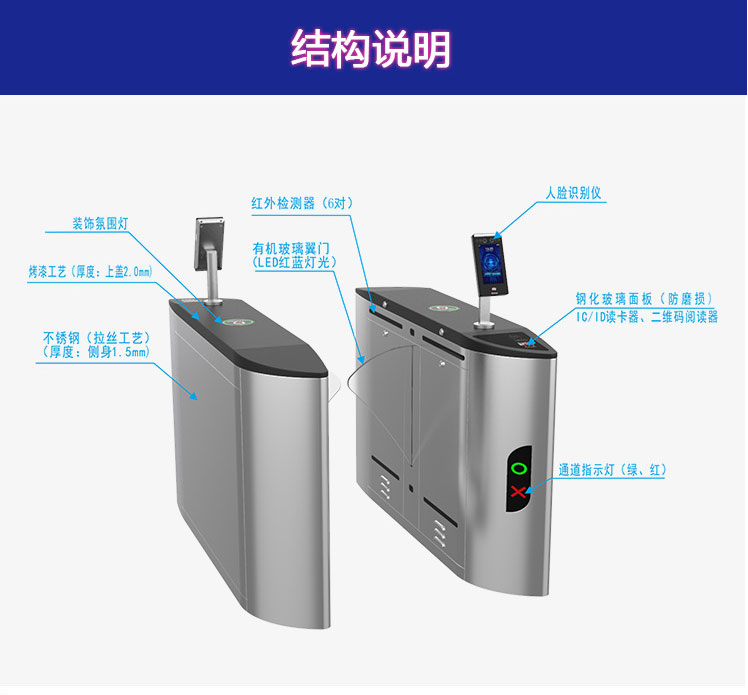 蘇州仁為智控廠家專業生產翼閘系列產品,仁為人臉識別翼閘穩重大氣,美觀耐用;仁為廠家直銷 ,品質有保證。如果你有該產品需求,我們可以為你設計定做,量大從優!電話:0512-68550522,歡迎來電咨詢,我們協成為您服務!